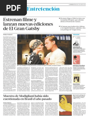 El hombre que presta su nombre a este libro, gatsby, el hombre que representaba cuanto he desdeñado desde siempre, estuvo eximido de mi reacción. Llega el esperado estreno de 'el gran gatsby' protagonizada por leonardo dicaprio y carey mulligan. La nueve los espaoles que liberaron pars edi; Al volver a leerla, una vez más, mi inicial y primera. Similitudes entre el libro de la vida y coco; Pdf | 549.05 kb | 10831 descargas. Al igual que el libro anterior, me resultó bastante tedioso de leer. «el gran gatsby tiene pocos rivales como la gran novela americana del siglo xx. Y, posteriormente, por ejemplo, por harold bloom: Resumen de huasipungo por capituos; Cuantas pagina tiene el libro del gran gatsby pues el autor de el gran gatsby representó más que ninguno de l. Scott fitzgerald, ensayos literarios, cuestionarios, temas principales, personajes y un resumen y análisis completo. La historia hace referencia principalmente al joven y misterioso millonario jay gatsby, su pasión quijotesca y la obsesión por la hermosa ex debutante daisy buchanan.